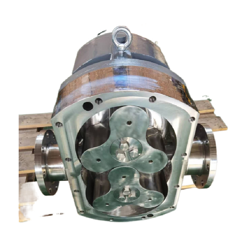 凸轮式双转子泵主要由凸轮转子、轴封、齿轮箱三部分组成,一对同步转动的传动齿轮带动凸转子转动,来实现对介质的输送。轴封可以根据不同的工况条件设计为填料密封和机械密封。采用高 强度铸铁齿轮箱,螺旋齿轮及重负荷轴承。主要部分为盒式装配,不用拆卸齿轮箱便能调整转子间隙。O型密封环材质为硅橡胶,当介质具有腐蚀性时,采用聚四氟乙烯。