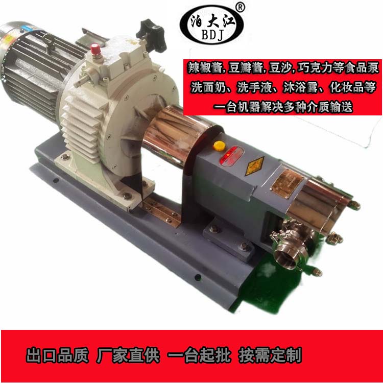 a.凸轮式转子泵适于输送温度-30℃— +150℃,粘度为30-1.0×105cst,含有固体颗粒的悬浮液体及具有腐蚀性和卫生性要求高的介质,泵体内部与介质接触的零部件均采用不锈钢材料,并且可以根据介质不同的物理特性,改变泵的转速。用途用于食品、饮料、酿造、医药、日用化工、石油化工等行业。